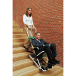 La chaise d’évacuation se range pliée à proximité des escaliers ou des personnes à risques. Elle est prête à l’emploi en quelques secondes et est utilisable par une seule personne.